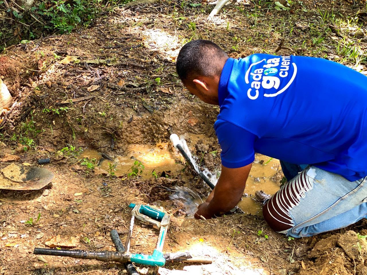 Tras el reporte realizado a través de la VenApp del 1×10 del Buen Gobierno, la gestión del alcalde Alirio Sánchez en conjunto con la Hidrológica del Centro (Hidrocentro), efectuaron labores de reparación de tubería de 1/2 pulgadas de aguas blancas en el bulevar de Colinas de Pequiven, parroquia Morón, del municipio Juan José Mora.
